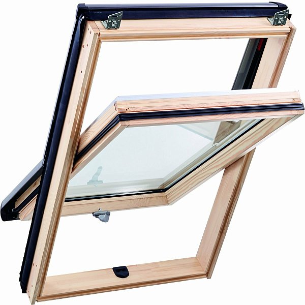 Окно R45 Н200 с термоблоком, 54х118 см, из дерева (однокамерное, среднеповоротное), Roto