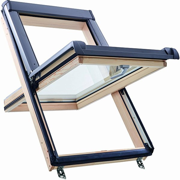 Окно R45 Н200 с термоблоком, 74х140 см, из дерева (однокамерное, среднеповоротное), Roto