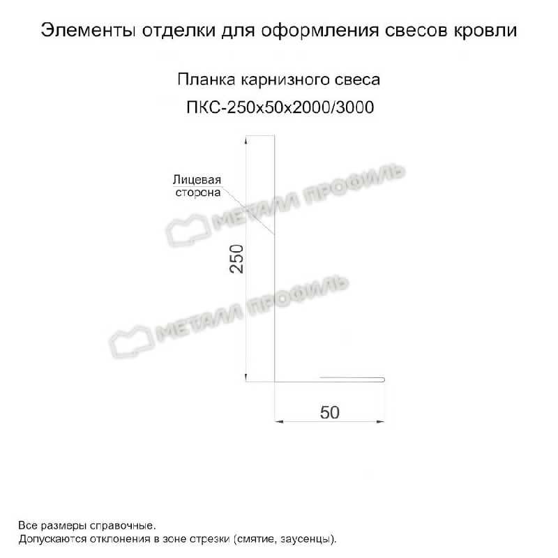- Планка карнизного свеса 250х50х3000 (ECOSTEEL_T-01-ЗолотойДуб-0.5) не ржавеет.