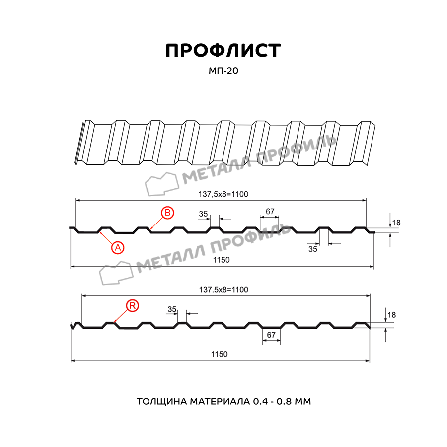 Профиль МП-20 обладает оптимальными характеристиками прочности и устойчивости к внешним воздействиям, что делает его идеальным выбором для кровли и фасадов.
