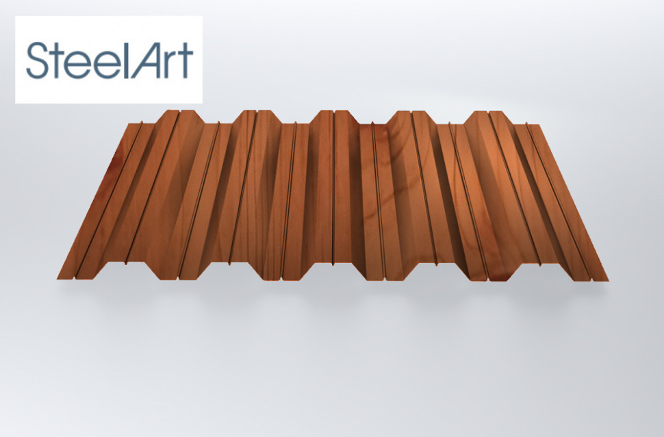 Профнастил SteelX НС35 SteelArt 0,4 Золотой дуб - это качественный материал для кровли, который обладает высокой прочностью и долговечностью. Изготовленный из оцинкованной стали толщиной 0,4 мм, он идеально подходит для защиты вашего дома от неблагоприятных погодных условий.