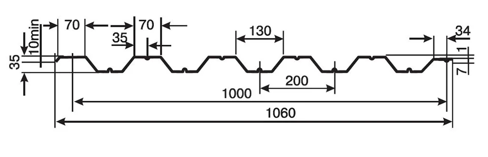 Профнастил ЮджинСтрой НС35 имеет толщину 0,7 мм, что обеспечивает надежность и долговечность конструкции. Благодаря своим характеристикам, этот материал идеально подходит для использования как на крыше, так и на фасаде здания.
