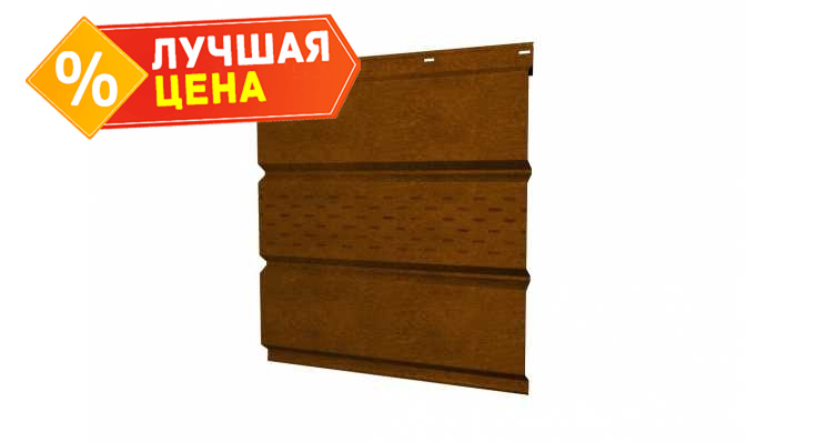 Софит металлический центральная перфорация 0,45 Print Elite с пленкой Golden Wood - это качественный и стильный элемент отделки для вашего дома. Изготовлен из металла толщиной 0,45 мм, он обеспечивает прочность и долговечность. Центральная перфорация придает ему элегантный и изысканный вид, добавляя уникальности вашему фасаду. Покрыт пленкой Golden Wood, он имитирует натуральное дерево, придавая вашему дому теплоту и уют. Софит металлический центральная перфорация 0,45 Print Elite с пленкой Golden Wood легко монтируется и не требует особого ухода, что делает его идеальным выбором для вашего дома.